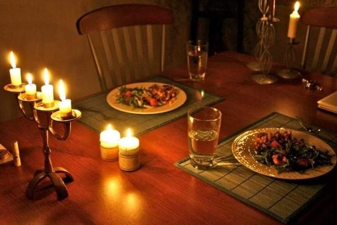 تحضير جو رومانسي بإضاءة الشموع والموسيقى الهادئة.