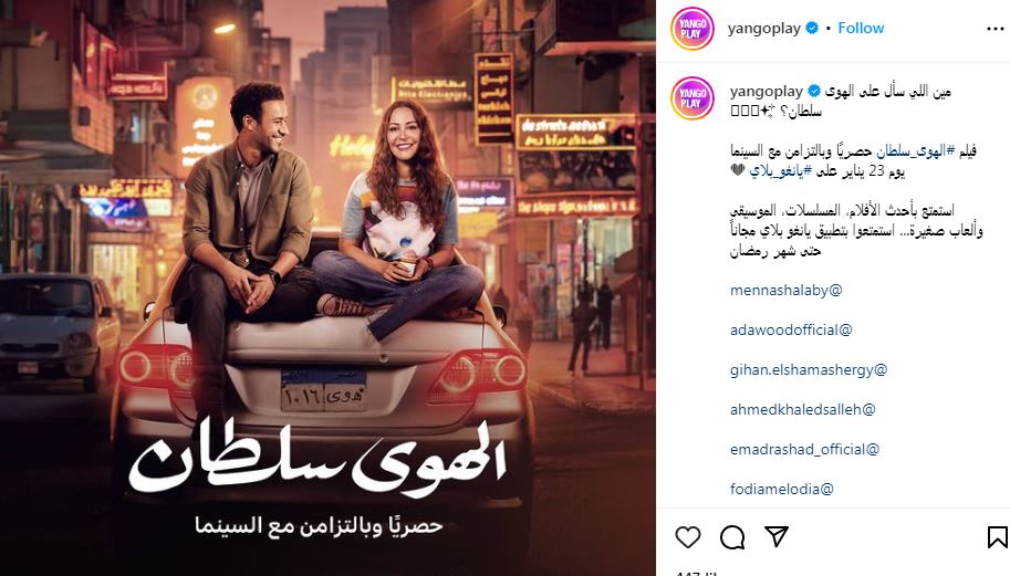 ونشرت المنصة بوستر العمل وعلقت علية " مين اللي سأل على الهوى سلطان؟.. فيلم الهوى سلطان حصريًا وبالتزامن مع السينما يوم 23 يناير على يانغوبلاي ".