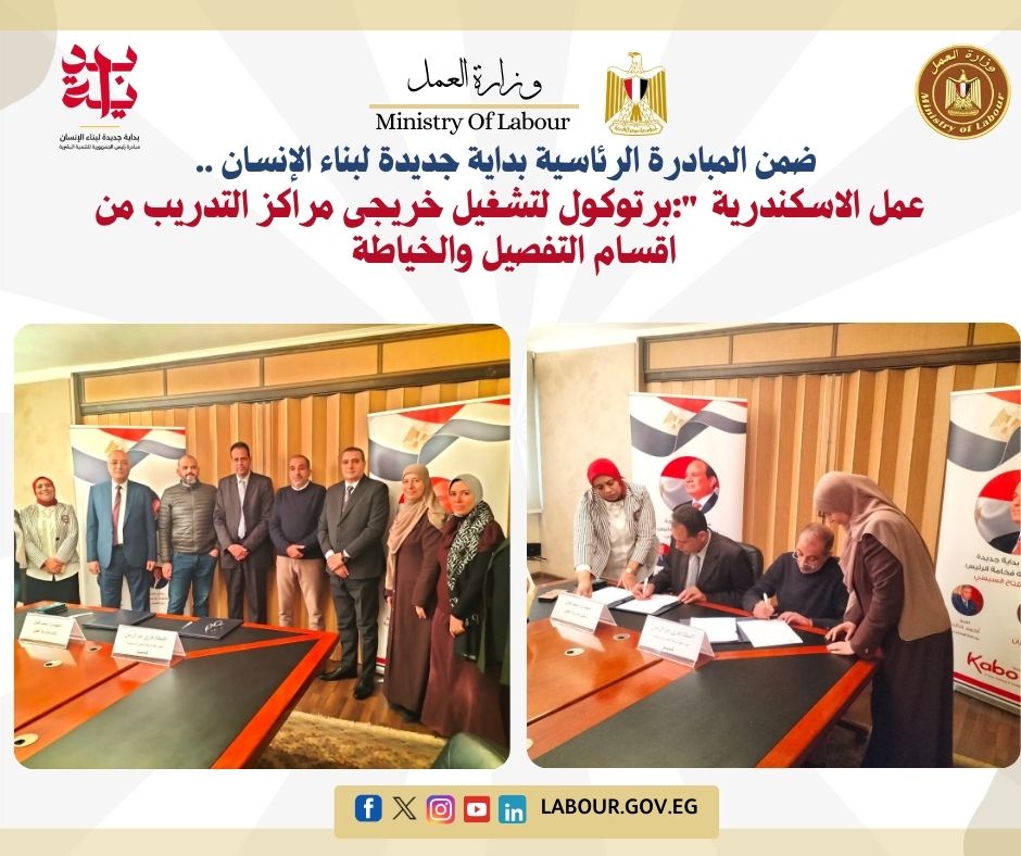 قامت مديرية العمل بالاسكندرية بتوقيع برتوكول مع شركة النصر للملابس والمنسوجات (كابو)، وأوضح المهندس محمد كمال مدير المديرية أن البروتوكول يهدف إلي تشغيل الشباب والمتخرجين من اقسام التفصيل والخياطة من المراكز التدريبية التابعة للمديرية فور الانتهاء من التدريب، على أن تلتزم الشركة بعرض الوظائف الشاغرة بصورة واضحه حتى يتسنى للمديرية توفير العمالة الماهرة بصورة تناسب الوظيفة.