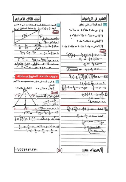 أسئلة استرشادية مهمة فى الجبر والهندسة لطلاب الشهادة الإعدادية