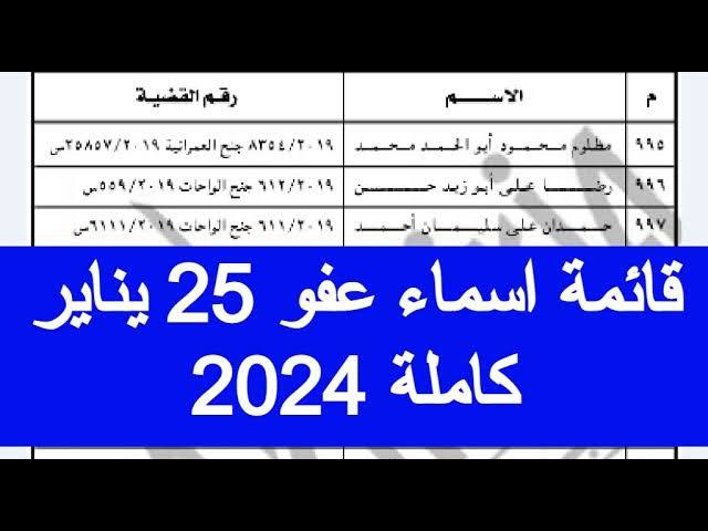 أسماء المفرج عنهم بمناسبة 25 يناير 2025 بقرار جمهوري