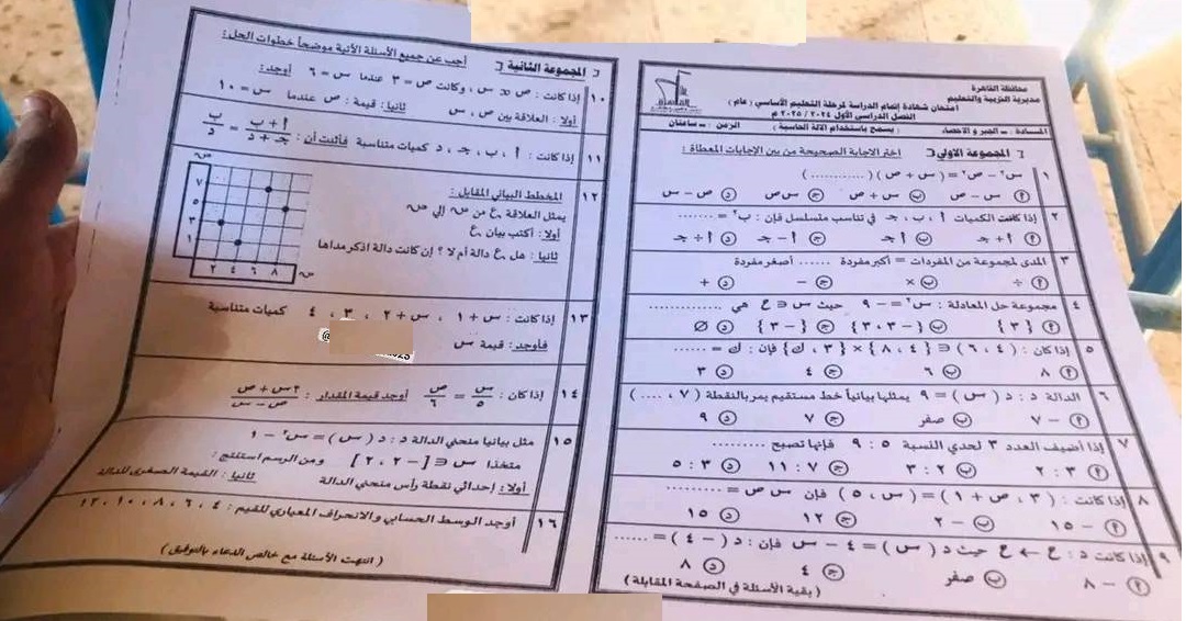 متوفر.. إجابة امتحان الجبر للصف الثالث الاعدادي 2025 القاهرة
