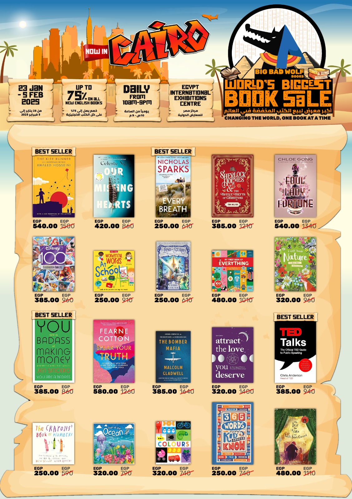 تدعو بيج باد وولف للكتب جميع محبي القراءة والمؤسسات الثقافية والتعليمية إلى زيارة جناحها في الصالة رقم 6(جناح الكتب الأجنبية المخفضة) امام قاعة 4 واستكشاف فرص التعاون لتوفير الكتب الأجنبية بأسعار تنافسية وتعزيز حب القراءة بين الجميع.