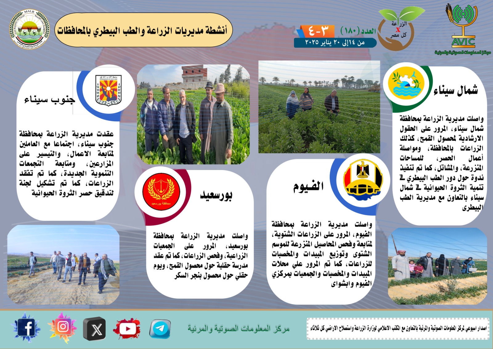 نشاط مكثف لمديريات الزراعة والطب البيطري خلال الفترة من 14 يناير لـ20