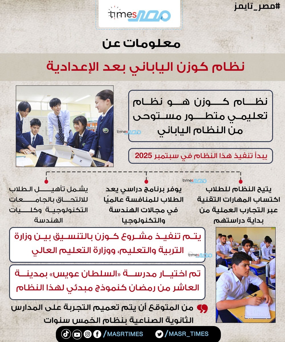 في سياق متصل، يهدف نظام كوزن إلى تطوير التعليم الهندسي والتكنولوجي في مصر، وتزويد الشباب بالمهارات المطلوبة عالميًا في مجالات الهندسة والتكنولوجيا. كما يركز على التدريب العملي والتجارب الميدانية منذ المرحلة المبكرة من الدراسة. النظام مصمم لتنمية مهارات الطلاب وتخريج جيل مؤهل للمساهمة في التنمية الاقتصادية والاجتماعية في مصر.