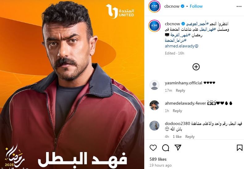 مسلسلات رمضان 2025 .. أحمد العوضي يشوّق جمهوره لـ مسلسل “فهد البطل” (صورة)