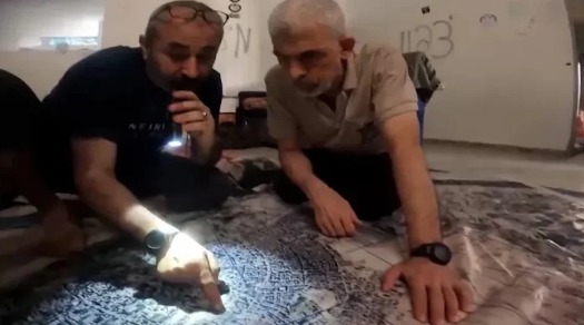 وظهر السنوار وهو يجلس أثناء التخطيط لتنفيذ عمليات مع قائد كتيبة تل السلطان فى رفح محمود حمدان الذى استشهد معه فى رفح.