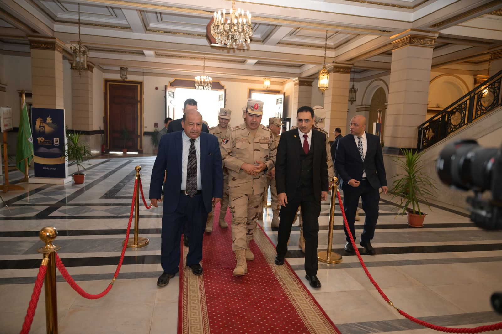 ومن جانبه أعرب اللواء أركان حرب أسامة عبد الحميد داود قائد قوات الدفاع الشعبي والعسكري، عن سعادته بتواجده في رحاب جامعة القاهرة التي تعد أحد صروح العلم والمعرفة ومنارة العلم بين الطلبة والطالبات، ونقل إليهم تحيات الفريق أول عبد المجيد صقر القائد العام للقوات المسلحة وزير الدفاع والإنتاج الحربي والسيد الفريق أحمد خليفة رئيس أركان حرب القوات المسلحة، مؤكدًا على اعتزازه بوجوده بين أبنائه الذين يمثلون بشائر الغد المشرق والمستقبل الواعد الذي تعقد مصر عليه آمالا كبيرة في بناء الجمهورية الجديدة، وأن الهدف الرئيسي من تنظيم هذه الندوات هو مجابهة الفكر بالفكر وتحصين كافة أطياف المجتمع وخاصة الشباب من الأفكار المغلوطة والموجهة من خلال الإدراك الصحيح والوعي الحقيقي المستنير لطبيعة التحديات التي تحيط بالدولة المصرية.