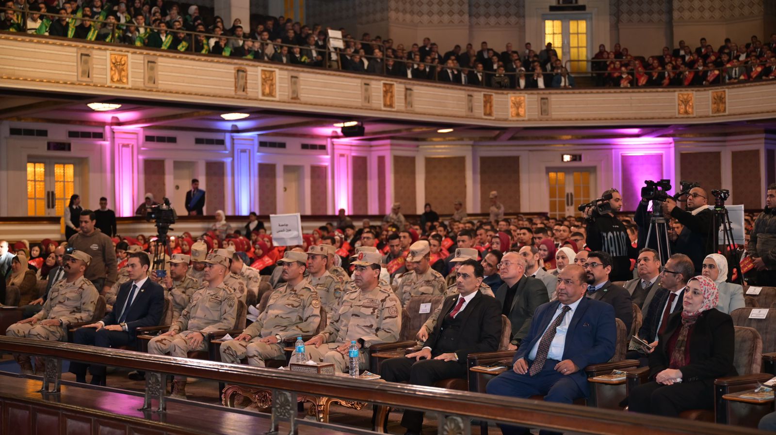شهدت قاعة الاحتفالات الكبري، بجامعة القاهرة، الندوة التثقيفية المجمعة الأولي التي نظمتها قوات الدفاع الشعبي والعسكري بالتعاون مع وزارة التعليم العالي والبحث العلمي، برعاية الدكتور محمد سامي عبد الصادق رئيس الجامعة، وبحضور السيد اللواء أركان حرب أسامة عبد الحميد داود قائد قوات الدفاع الشعبي والعسكري، والدكتور محمود السعيد نائب رئيس جامعة القاهرة لشئون الدراسات العليا والبحوث، والدكتور أحمد رجب نائب رئيس جامعة القاهرة لشئون التعليم والطلاب، وعدد من رؤساء الجامعات المصرية والنواب وعمداء الكليات وأعضاء هيئة التدريس، وطلبة الجامعات المشاركة بالندوة.