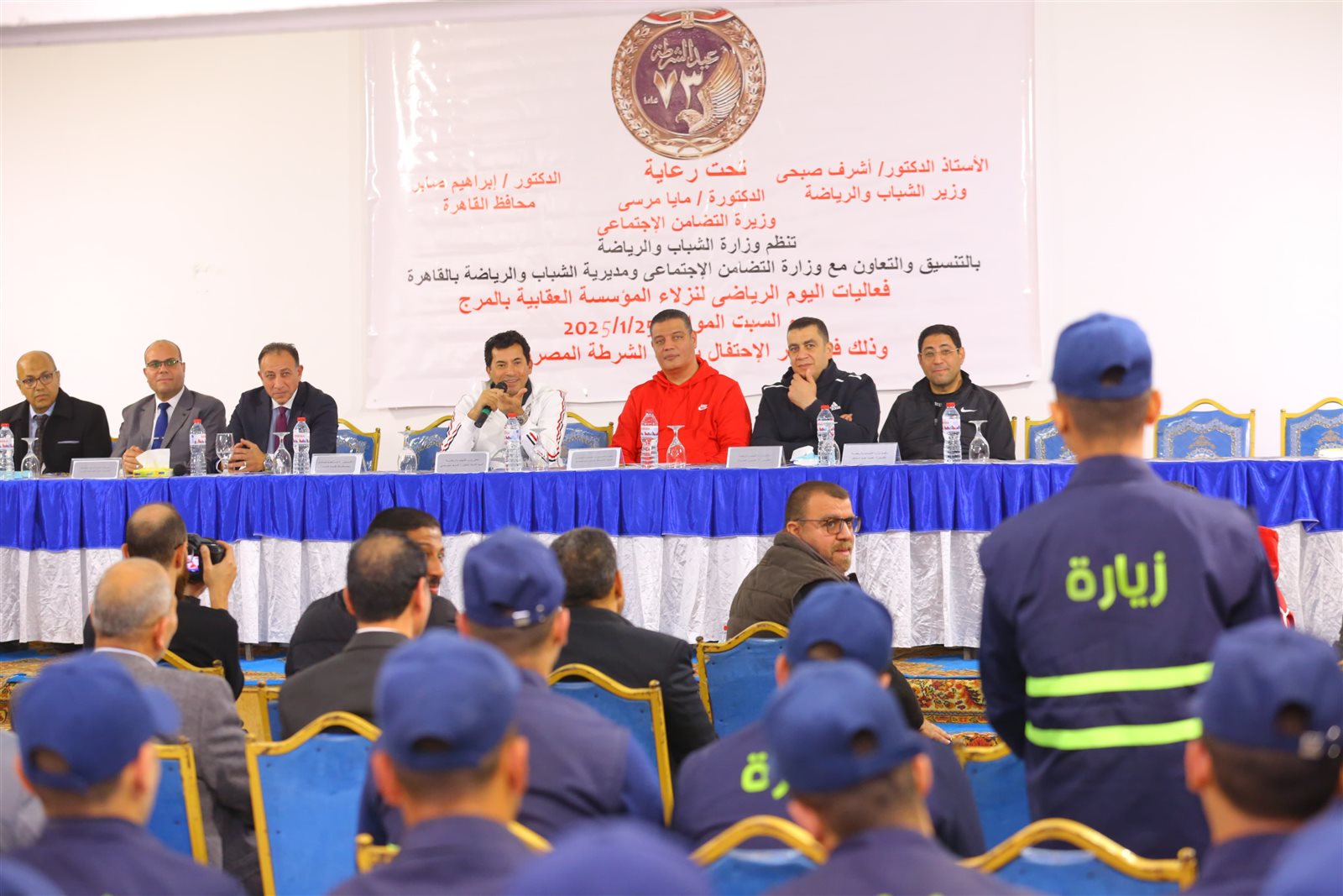 نظمت وزارة التضامن الاجتماعي بالتعاون مع وزارة الشباب والرياضة فعاليات اليوم الرياضي لأبناء المؤسسة العقابية بالمرج التابعة لوزارة التضامن الاجتماعي بمنطقة المرج، فى إطار الاحتفال بأعياد الشرطة المصرية والذى شهد فاعلياته الدكتور أشرف صبحي وزير الشباب والرياضة بحضور الدكتور إبراهيم صابر، محافظ القاهرة، والأستاذ أيمن عبد الموجود الوكيل الدائم لوزارة التضامن الاجتماعي، والأستاذ وائل عبد العزيز رئيس الإدارة المركزية للرعاية الاجتماعية، والأستاذ حسين إسماعيل مدير عام الإدارة العامة للدفاع الاجتماعي بوزارة التضامن الاجتماعي، ودكتور عمرو الحداد وكيل وزارة الشباب والرياضة ورئيس الادارة المركزية للتنمية الرياضية، وعدد واسع من قيادات العمل بوزارتى التضامن الاجتماعى والشباب والرياضة.
