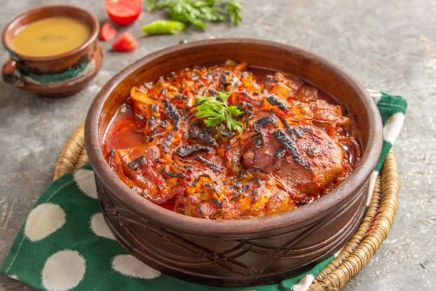 وتدخل فرن ساخن لمدة 25 دقيقة حتى تتشرب الطعم من الصلصة