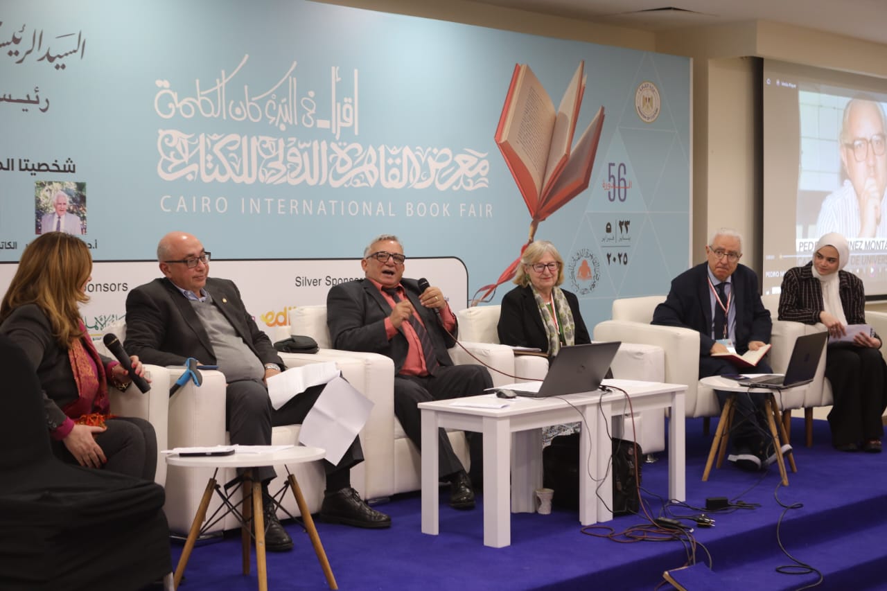 ومن جانبه، قال الدكتور أنطونيو بيدرو، أستاذ التاريخ المعاصر بمدريد، إنه يشكر إدارة المعرض والقائمين على الندوة للاحتفاء بوالده بالرغم كونه ولد في القاهرة فإنه لا يتحدث العربية، ولكنه يعشق مصر عشقا كبيرا أما بالنسبة لوالدي فتأثرت شخصيته كثيرا بوجوده بها تلك الفترة التي عمقت شعوره الإنساني، وأكد أنه لفهم شخصيته يجب علينا فهم تلك التأثيرات والإلمام بها.