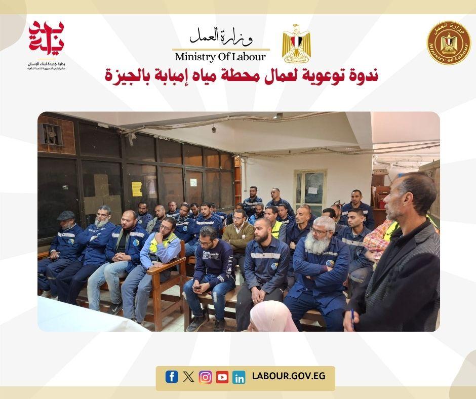 عقدت مديرية العمل بالجيزة ندوة توعيه، وذلك بمقر محطة مياه إمبابة، شارك فيها عدد من العاملين بالمحطة، لتوعيتهم بالحقوق والواجبات في العمل وتطبيق اشتراطات السلامة والصحة المهنية.