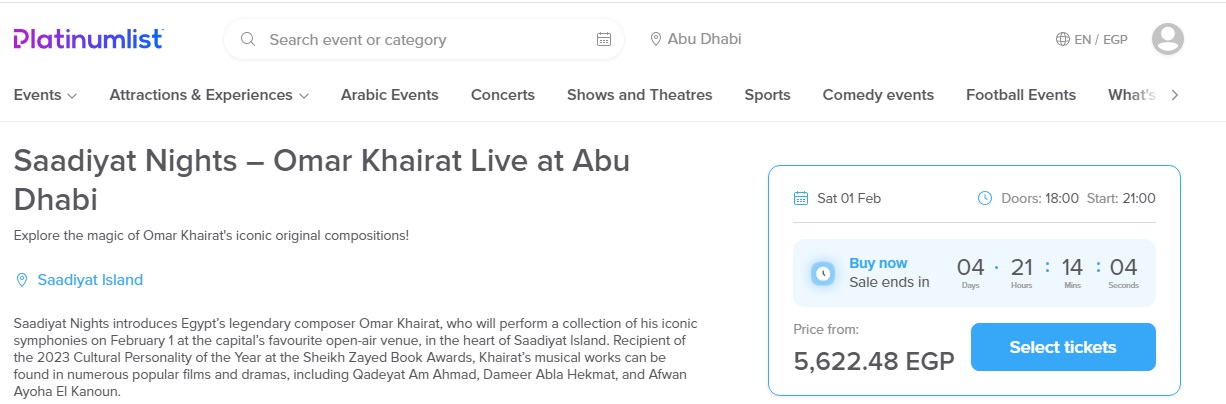 أسعار تذاكر حفل الموسيقار العالمي عمر خيرت ضمن ليالي السعديات في أبوظبي
