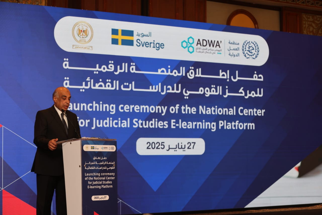 اقام المستشار عدنان فنجري وزير العدل احتفالية إطلاق منصة المركز القومي للدراسات القضائية "أكاديمية القضاة" بالتعاون مع منظمة العمل الدولية وبرنامج النهوض ببرنامج العمل اللائق بشمال افريقيا "أضواء".