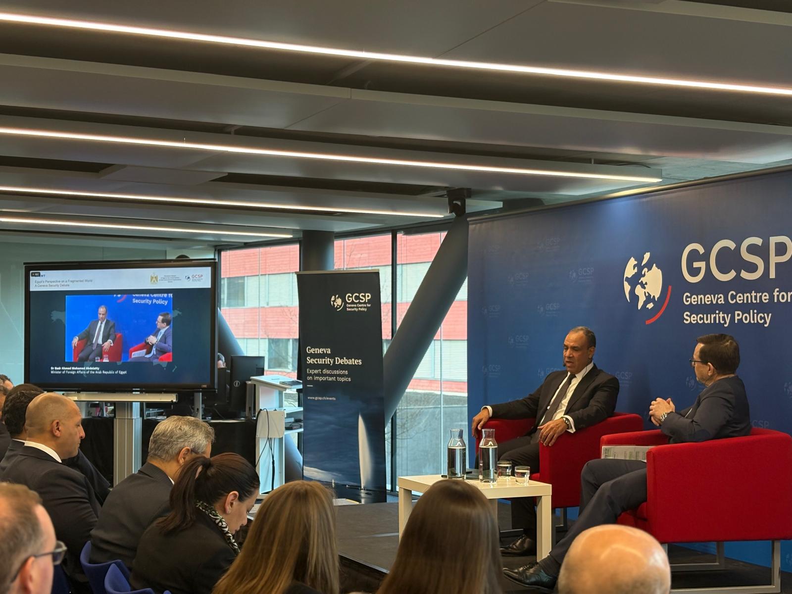وزير الخارجية يشارك في جلسة حوارية بمركز جنيف للسياسات الأمنية حول التطورات بالشرق الأوسط