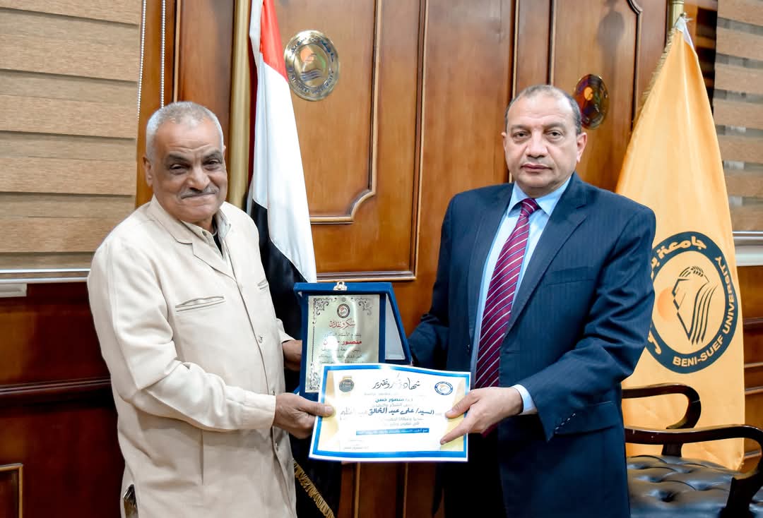 مجلس جامعة بني سويف يكرم أعضاء الجهاز الإداري ممن بلغوا السن القانونية
