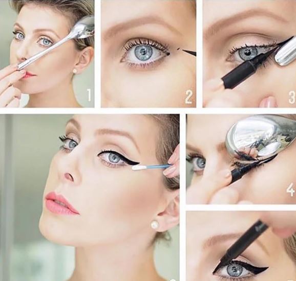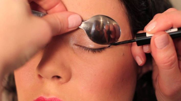 يمكنكِ الاستعانة بملعقة للحصول على رسمة آيلاينر دقيقة ومتناسقة بسهولة، وذلك باتباع الخطوات التالية: