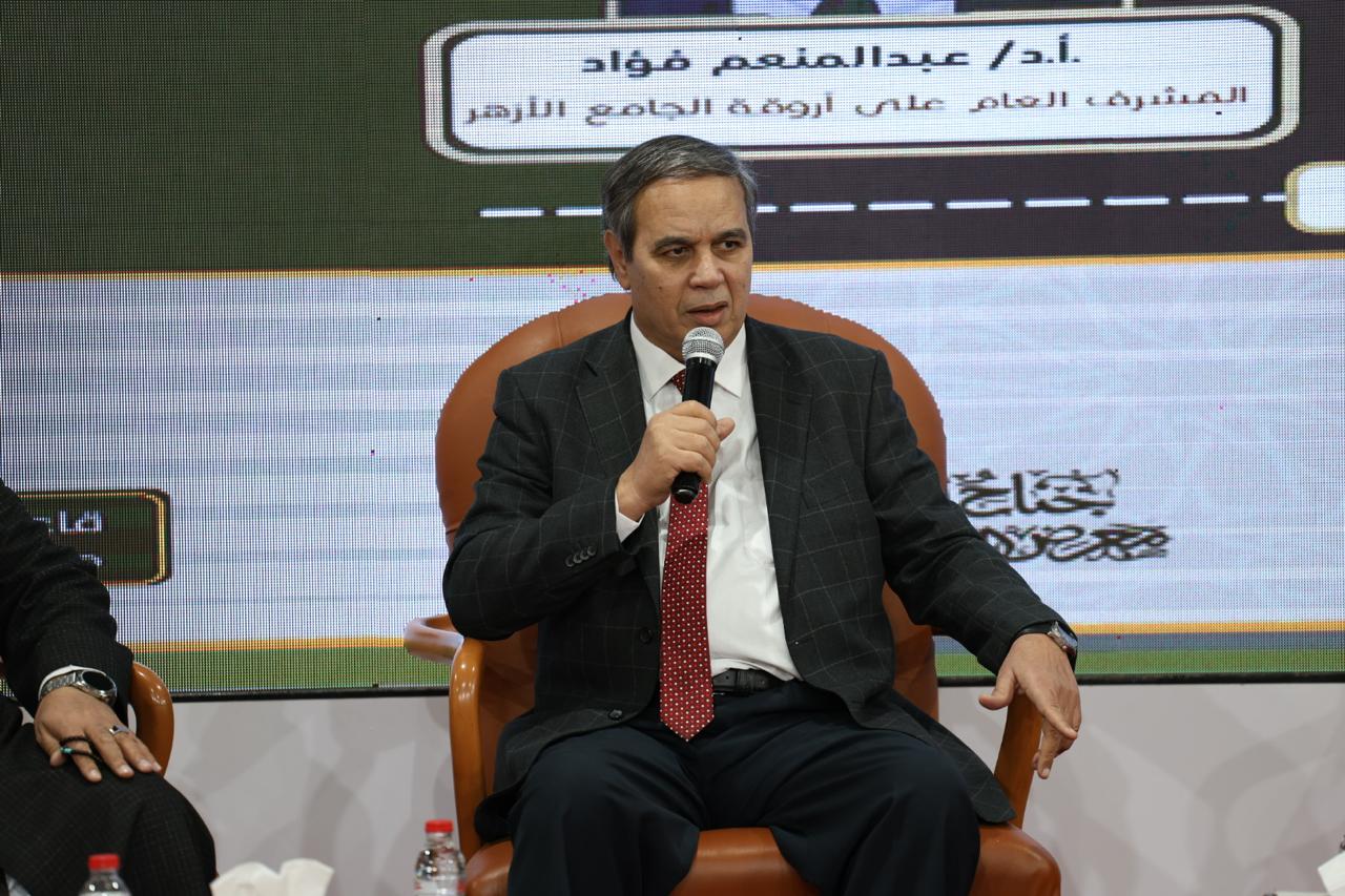نظم جناح الأزهر الشريف بمعرض القاهرة الدولي للكتاب، اليوم الخميس، ندوة بعنوان "دور أروقة الأزهر في الحفاظ على الأمن الفكري والمجتمعي"، شارك فيها كل من فضيلة الأستاذ الدكتور عبد المنعم فؤاد، المشرف العام على أروقة الجامع الأزهر، والدكتور صلاح عاشور، أستاذ التاريخ والحضارة بجامعة الأزهر، عميد كلية اللغة العربية السابق، وأدارها الدكتور هاني عودة، مدير عام الجامع الأزهر، وسط حضور لافت من رواد المعرض.