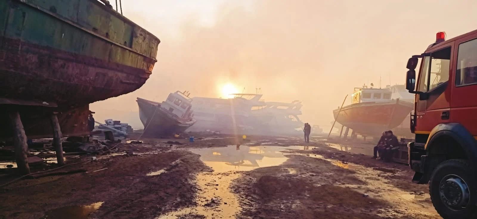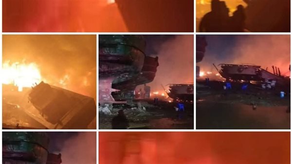 حريق ضخم بمنطقة صيانة السفن بالسويس