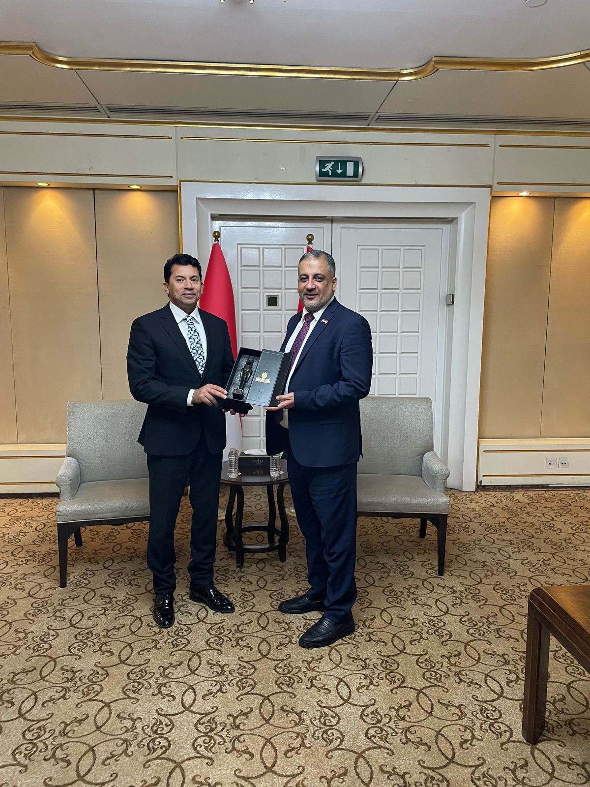 وأكد الدكتور أشرف صبحي على أن العلاقة بين البلدين تاريخية ومتجذرة، ونسعى دائماً إلى توطيدها من خلال برامج ومشاريع مشتركة تهدف إلى تمكين الشباب وتطوير الرياضة، مشيراً إلى أن هذه اللقاءات تمثل فرصة مهمة لتعزيز التعاون العربي في المجالين الرياضي والشبابي، وخلق بيئة داعمةللشباب في كلا البلدين تمكنهم من تحقيق تطلعاتهم والمساهمة الفعالة في مجتمعاتهم.