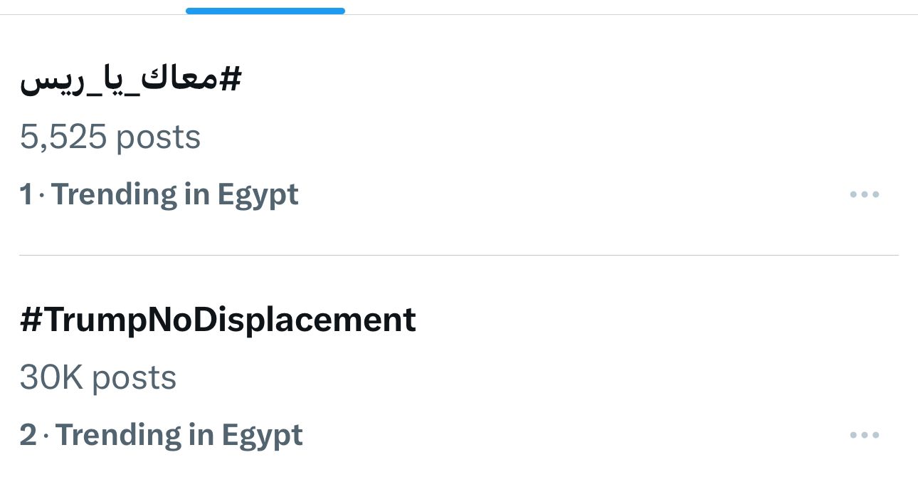 هاشتاج "معاك يا ريس" يتصدر التريند تأييداً لقرار الرئيس السيسي برفض تهجـ ير الفلسطينيين