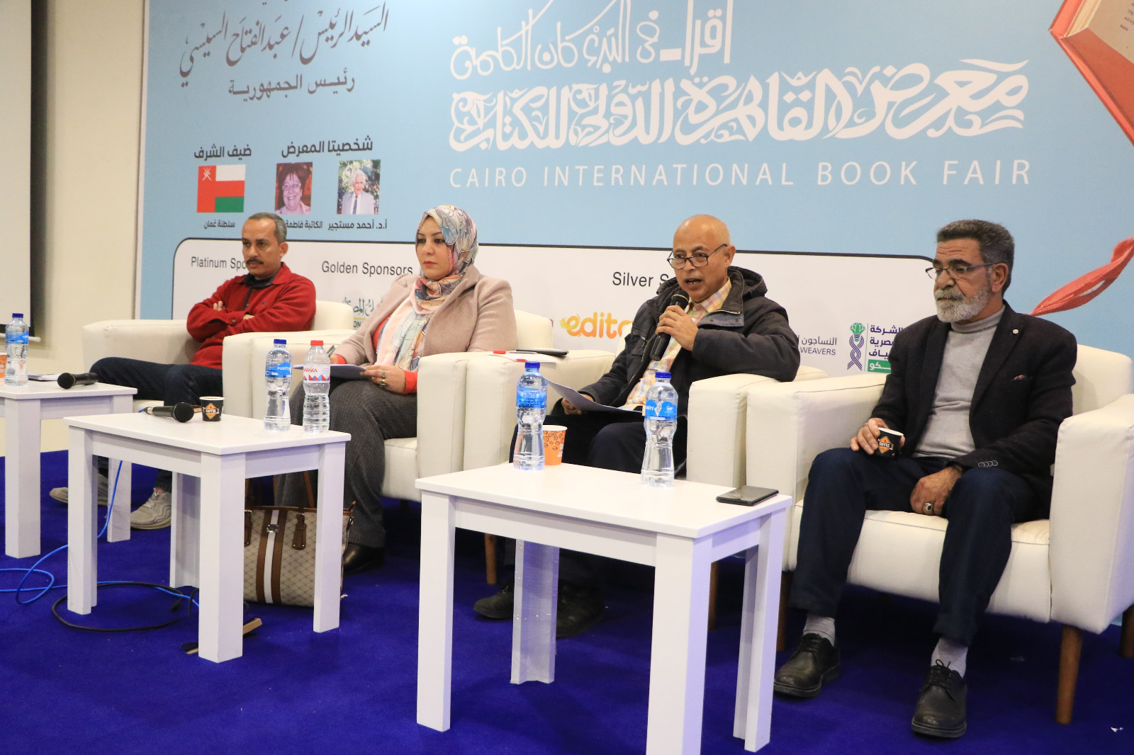 بدوره، تحدث الكاتب عبد الله السلايمة عن مسيرته الإبداعية التي تناولت سيناء، قائلًا: "لا أكتب ولا أتحدث إلا عن سيناء، والجميع يعلم أن سيناء قضية شائكة، لكنني أركز على الجانب الاجتماعي وأترك الجانب السياسي لأهله." وأضاف: "كتبت عن مجتمع البادية، ومن يكتب عن هذا المجتمع يواجه تحديات كبيرة، لكنني أؤمن بأن المبدع مطالب بتقديم رسالة تنويرية للمجتمع." وأوضح أن لديه ثلاث مجموعات قصصية، واجه بسبب كل واحدة منها العديد من التحديات، رغم أن مفاهيم كثيرة تغيرت اليوم في المجتمع البدوي. ثم قام بقراءة إحدى قصص المجموعة بعنوان "الشيطان".