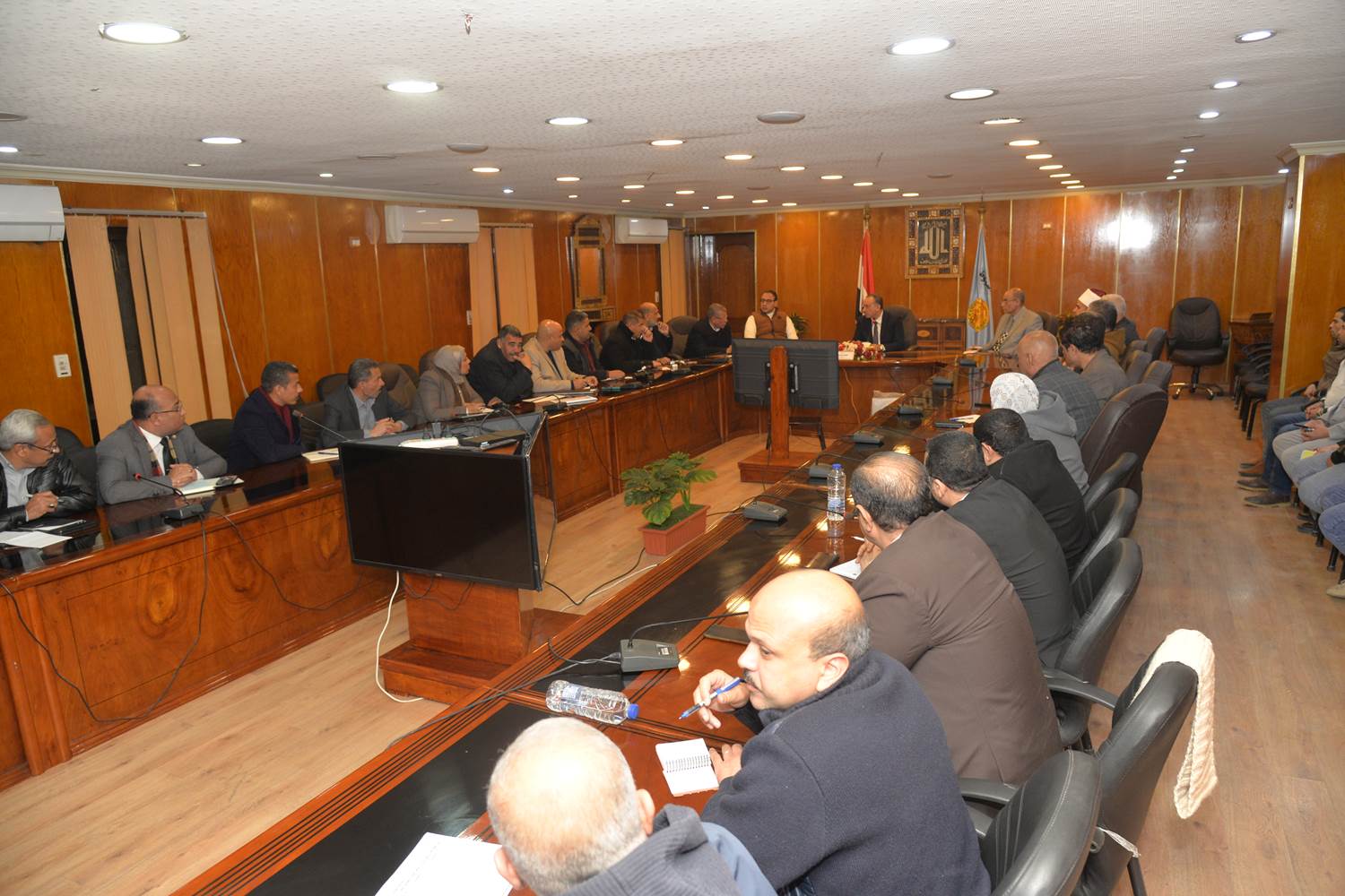 جاء ذلك خلال اجتماعه مع رؤساء المراكز والأحياء ومديري المديريات الخدمية لمناقشة العديد من الملفات المتعلقة بتحسين مستوى الخدمات المقدمة للمواطنين بحضور الدكتور مينا عماد نائب المحافظ، واللواء إسماعيل حسين مستشار المحافظة لشئون الإدارة العامة للمكتب الفني وجميع رؤساء المراكز والأحياء ووكلاء الوزارات ومديري المديريات الخدمية.
