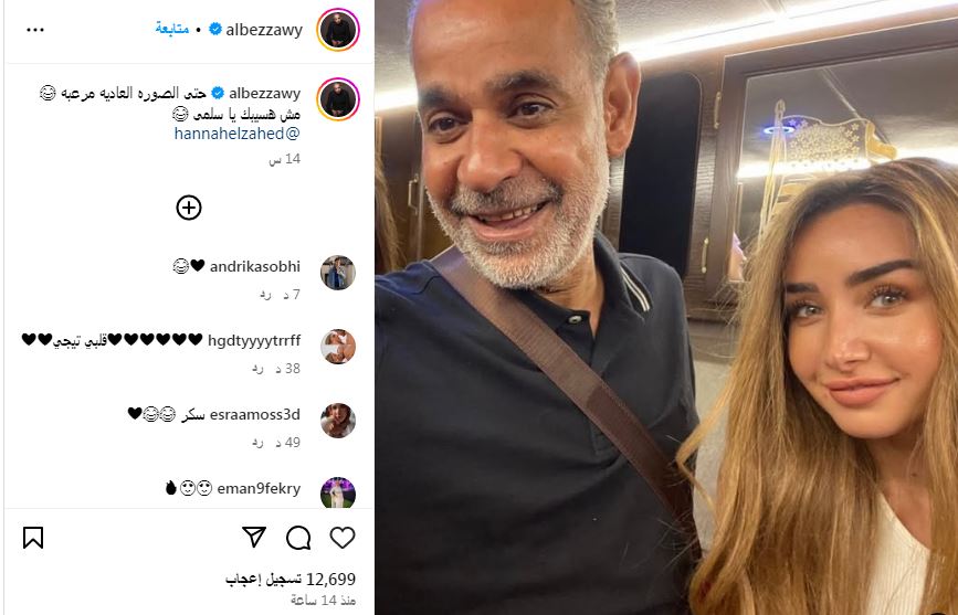 ونشر البزاوي صورة له برفقة هنا الزاهد عبر صفحته الرسمية "إنستجرام"وعلق عليها " حتى الصوره العاديه مرعبه ، مش هسيبك يا سلمى ".