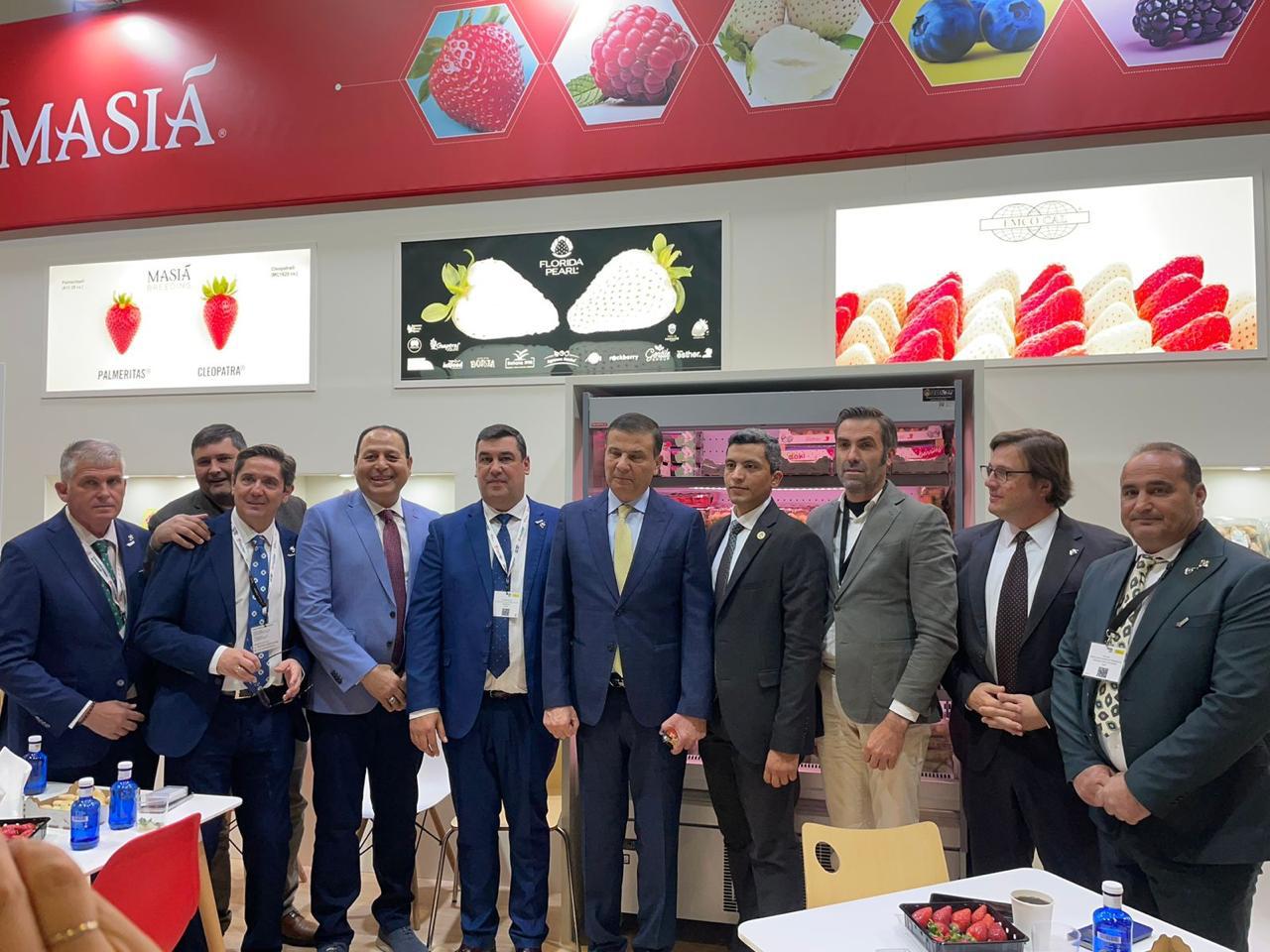 تجول "فاروق" اليوم في بعض أجنحة المعرض ولقاء أصحاب الشركات العالمية كما التقى بأعضاء الجمعيات التعاونية للتصدير بالإضافة إلى عقد لقاء مع مسئولي شركة إيكلاند التابعة لجامعة فلوريدا الأمريكية، بحضور لواء أشرف الشرقاوي رئيس الاتحاد العام لمنتجي ومصدري الحاصلات البستانية والعالم المصري الدكتور فهيم قورة مدير البرنامج الدولي لتربية الفراولة بجامعة فلوريدا الأمريكية، وبحث معهم زيادة إنتاج شتلات الفراولة المتميزة من خلال مشاتل الشركة والجامعة في مصر وتصديرها للخارج وذلك في إطار البروتوكول الموقع بين الشركة ووزارة الزراعة في هذا الشأن.