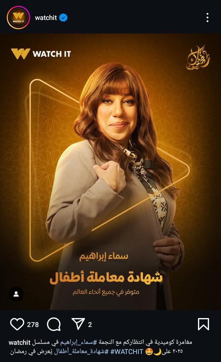 ونشرت المنصة الإلكترونية Watch it البوستر الفردي للفنانة سماء إبراهيم في مسلسل شهادة معاملة أطفال، وذلك من خلال حسابها الرسمي عبر موقع تبادل الصور والفديوهات القصيرة “إنستجرام” معلقا: “ مغامرة كوميدية في انتظاركم مع النجمة سماء إبراهيم في مسلسل شهادة معاملة أطفال، يعرض في رمضان 2025 علي Watch it”.