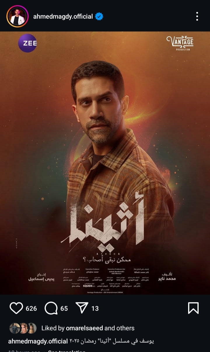 مسلسلات رمضان 2025.. أحمد مجدي يروج لشخصيته في مسلسل أثينا (صورة)