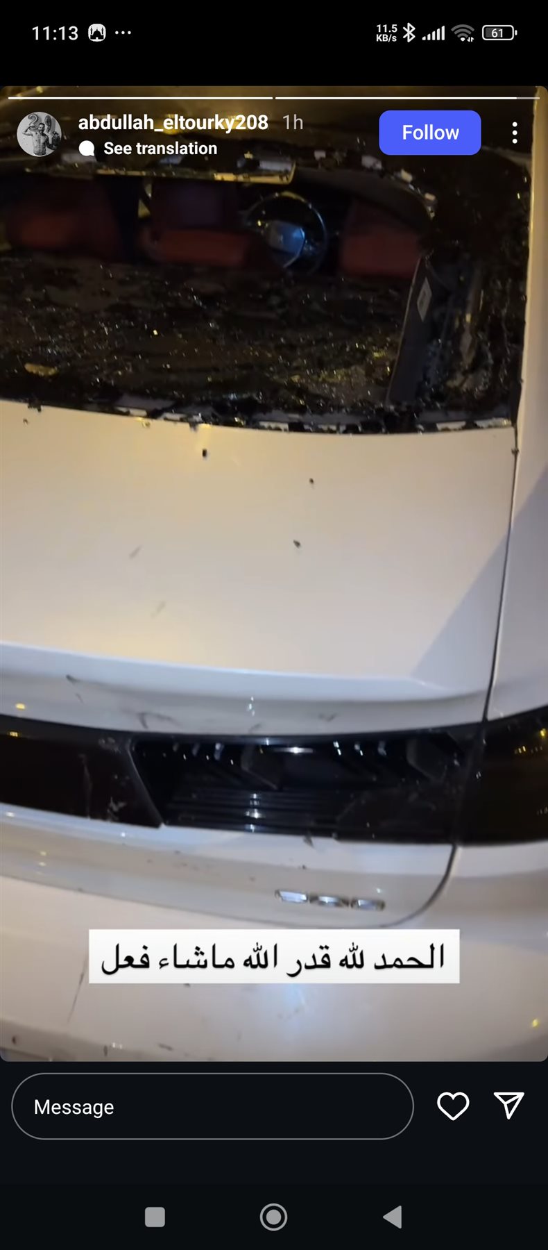 وكشفت المعاينة أن التيك توكر عبدالله تركي كان يقود سيارته وأثناء ذلك صدم سائق توصيل للطلبات نُقل المصاب إلى المستشفى لتلقي الرعاية الطبية اللازمة، فيما نشر عبد الله تركي صورة للسيارة بعد الحادث عبر مواقع التواصل الاجتماعي، معلقًا: "الحمد لله، قدر الله وما شاء فعل". وعلى الفور، انتقلت الشرطة إلى موقع الحادث وفتحت تحقيقًا للوقوف على ملابساته.