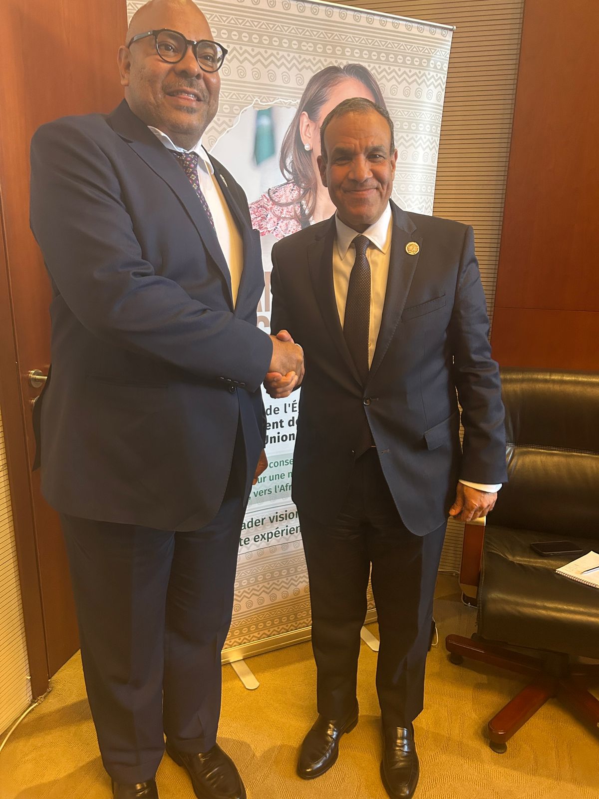عقد الدكتور بدر عبد العاطي وزير الخارجية والهجرة، اجتماعًا يوم الأربعاء 12 فبراير مع "محمود ثابت كومبو" وزير الشئون الخارجية والتعاون الشرق أفريقي بجمهورية تنزانيا المتحدة، على هامش أعمال الدورة العادية السادسة والأربعين للمجلس التنفيذي للاتحاد الإفريقي في أديس أبابا.