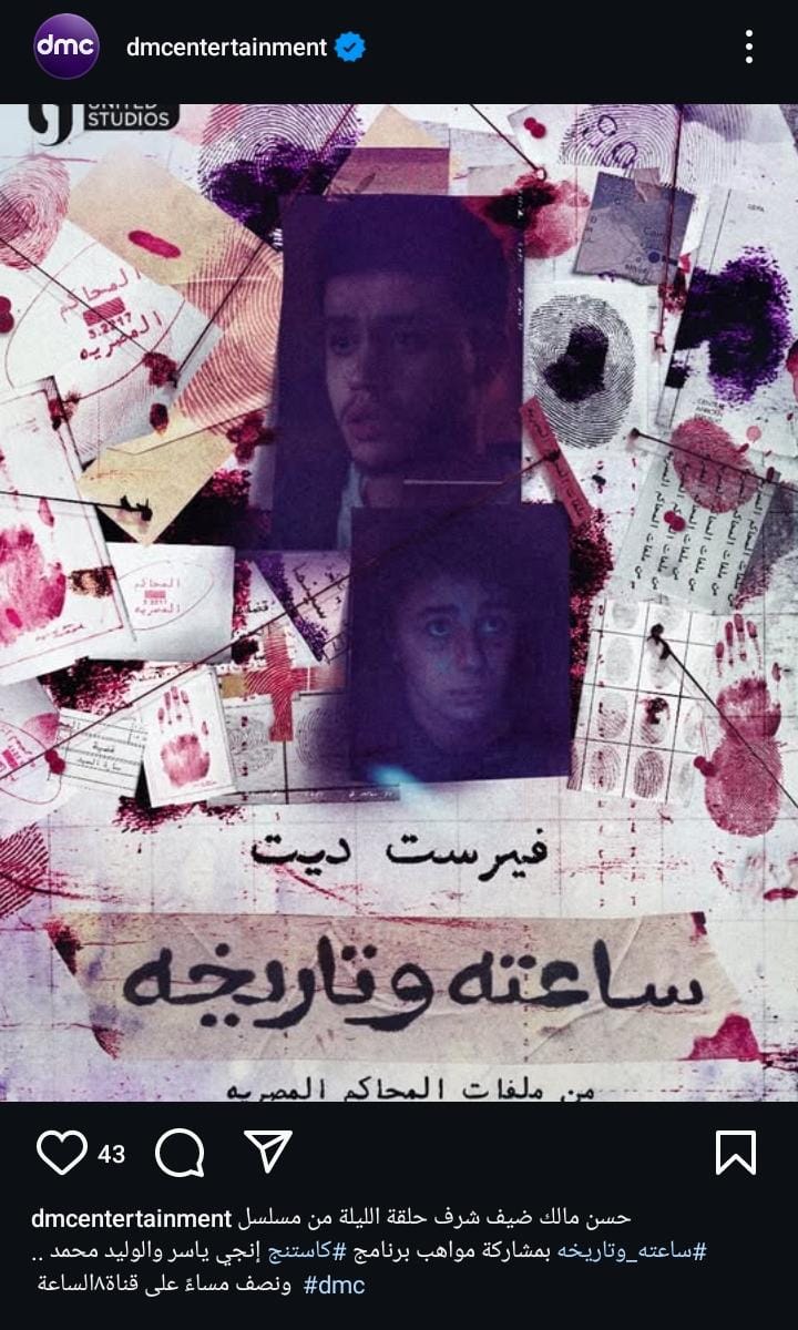 ونشرت دي إم سي بوستر الحلقة من خلال حسابها الرسمي عبر موقع تبادل الصور والفديوهات القصيرة “إنستجرام” وأعلنت عن موعد الحلقة معلقا: “ حسن مالك ضيف شرف حلقة الليلة من مسلسل ساعته وتاريخه بمشاركة مواهب برنامج كاستنج إنجي ياسر والوليد محمد .. الساعة 8 ونصف مساء علي قناة DMC”.