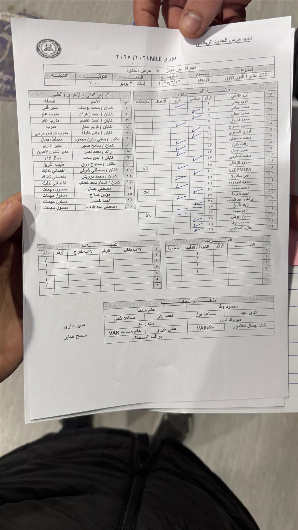 أعلن نادي حرس الحدود تشكيل فريقه لمواجهة بيراميدز في إطار بطولة الدوري الممتاز.