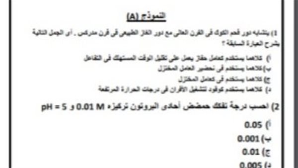 ننشر نماذج استرشادية مادة الكيمياء الثانوية العامة 2025