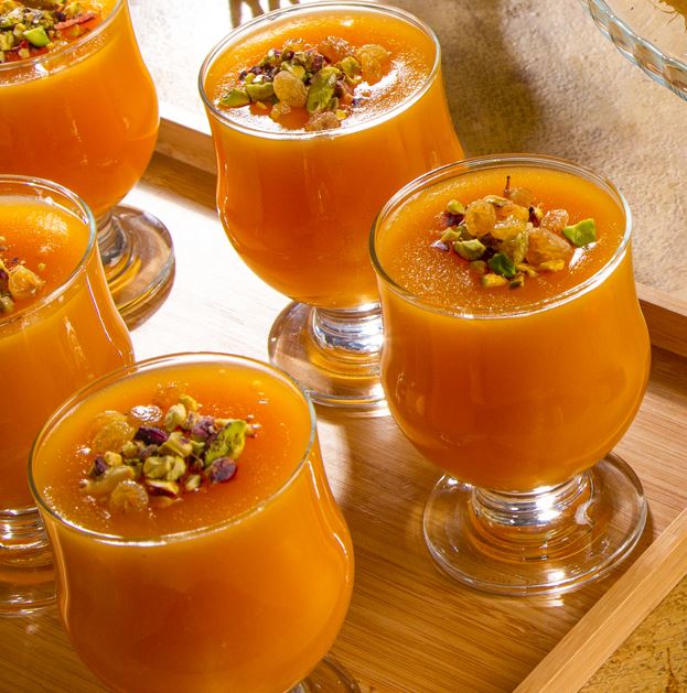 من الممكن تزيين مهلبية قمر الدين بأي شيء على حسب الرغبة.