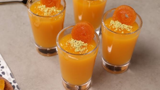 ينقع قمر الدين مدة ليلة كاملة في أربع كاسات ماء.