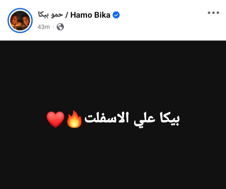 وأعرب مطرب المهرجانات حمو بيكا عن سعادتة بخروجه من الحبس، ونشر حمو بيكا من حسابه الرسمي عبر موقع التواصل الإجتماعي فيسبوك وعلق: "بيكا علي الأسفلت".