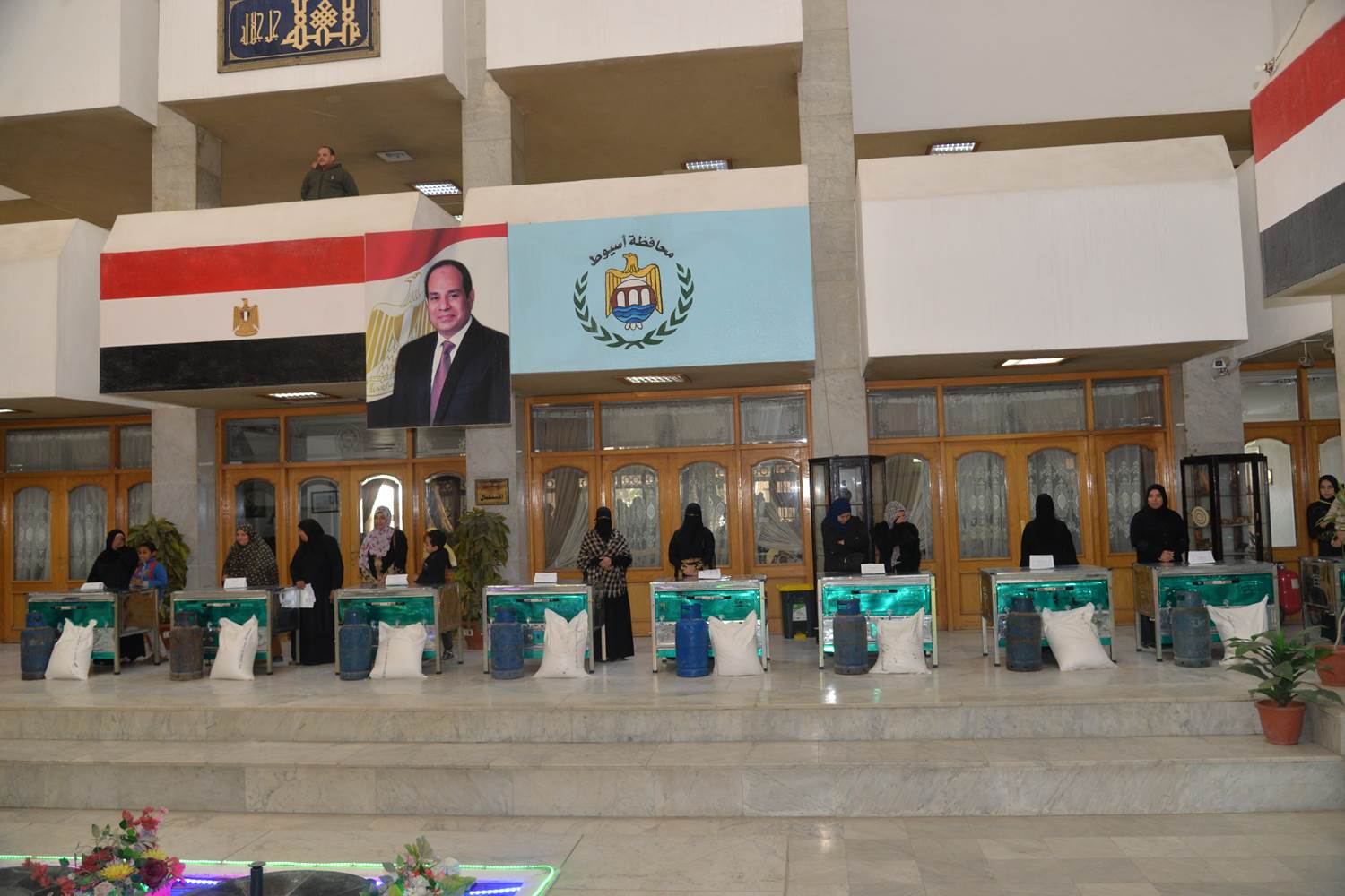 محافظ أسيوط يوزع 25 ماكينة خياطة وفرن منزلي بمشتملاتهم للسيدات المعيلات