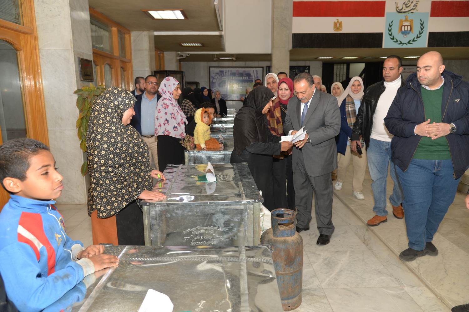 وتفقد محافظ أسيوط ماكينات الخياطة وأتواب القماش والأفران المنزلية بمشتملاتها"إسطوانات بوتاجاز - أجولة الدقيق" في بهو ديوان عام المحافظة قبل توزيعها للأسر الأولى بالرعاية والمرأة المعيلة والأرامل وذوات الهمم اللاتي تم اختيارهن بعد فحص وبحث إجتماعي عن طريق اللجنة المشكلة لذلك بهدف توفير حياة كريمة للسيدات ولأسرهن وجعلهن قادرات على الإنتاج والعمل وتحويل الطاقات المعطلة إلى طاقات منتجة لتحسين مستوى معيشتهن من خلال توفير مشاريع بسيطة وصغيرة تدر عليهن دخلًا بصفة دورية.
