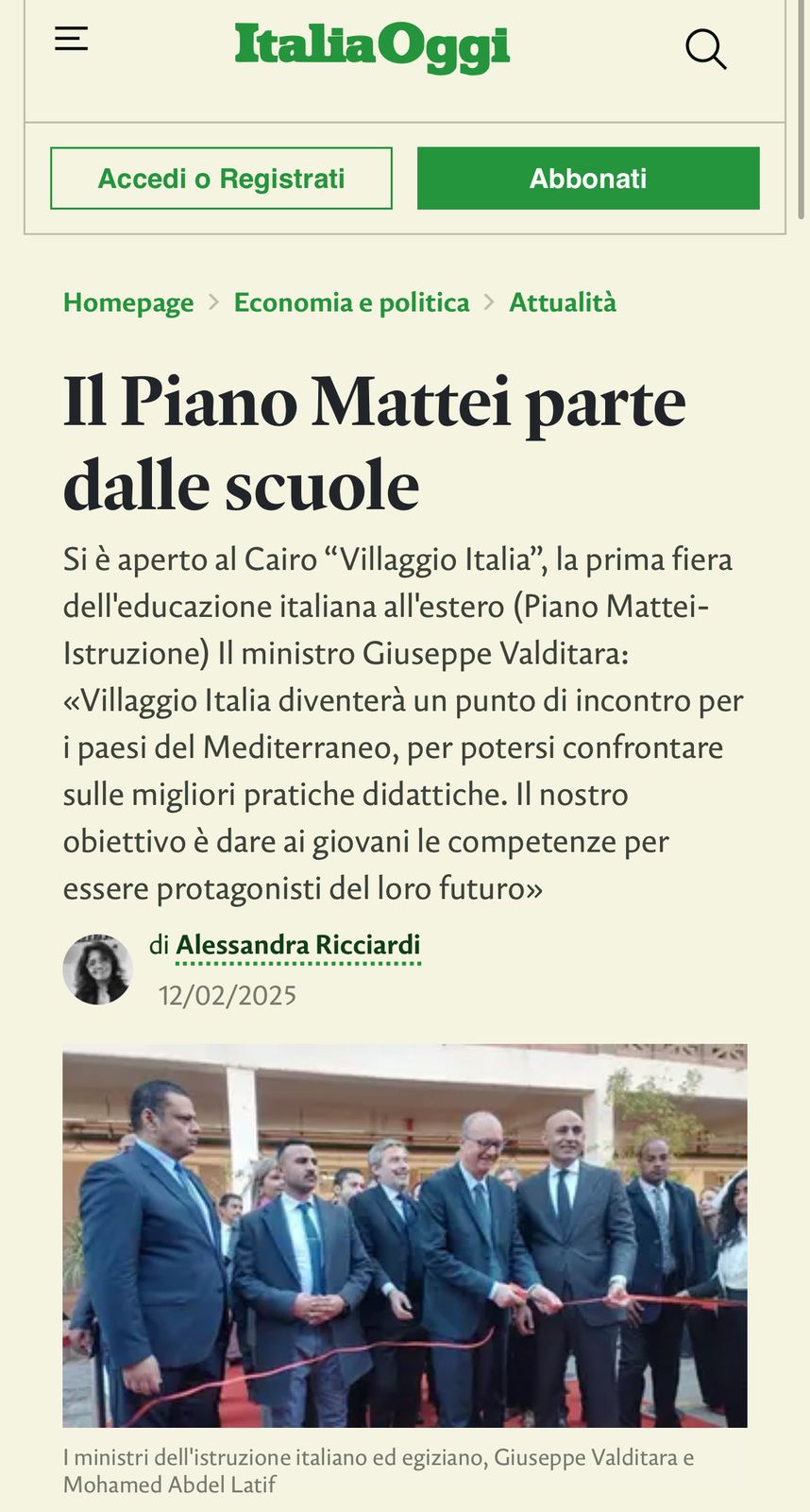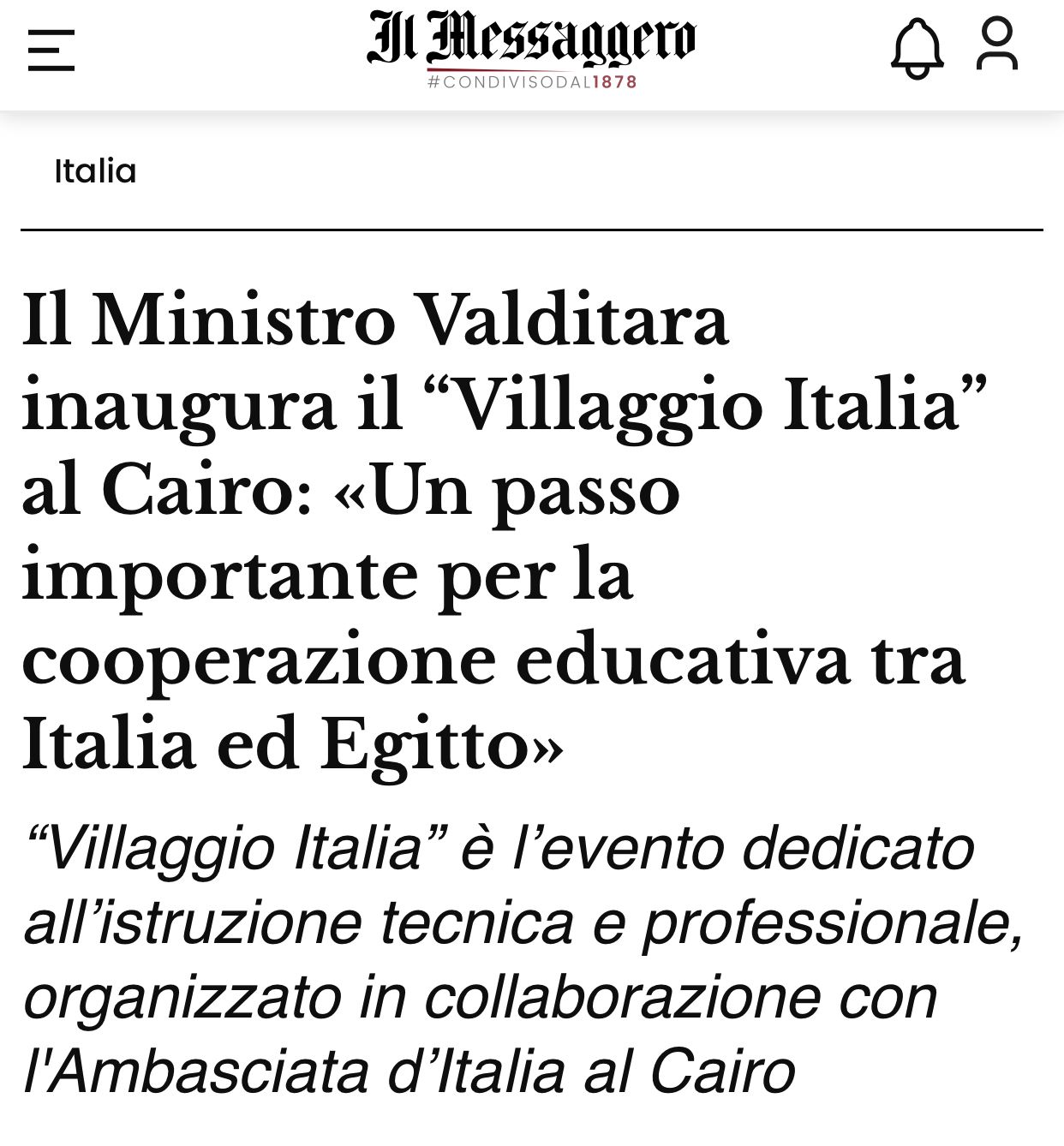 كما ركزت وسائل الإعلام الإيطالية على تصريحات وزير التعليم والاستحقاق الإيطالي التي وصف خلالها "قرية إيطاليا" باعتبارها منصة لتعزيز التعاون الاقتصادي بين مصر وإيطاليا، حيث شدد فالديتارا على أن التعليم الفني والمهني هو مفتاح أساسي لدعم الشركات الإيطالية والمصرية، عبر توفير عمالة مدربة تلبي احتياجات القطاعات الصناعية المختلفة.