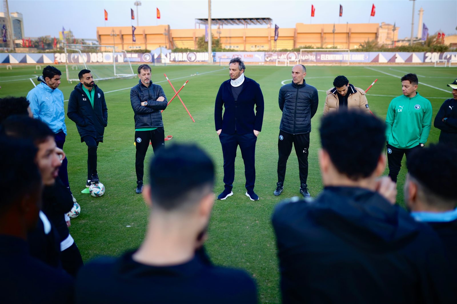 وعقد رئيس نادي بيراميدز جلسة مع اللاعبين على الرغم من مرضه، مؤكدا لهم أن كل مباراة يخوضها بيراميدز في الدوري يجب اعتبارها كأنها بطولة يجب الفوز بها، ولا يمكن الاستهانة بأي منافس، مع ضرورة مواصلة الانتصارات، والابتعاد بالصدارة والقمة.