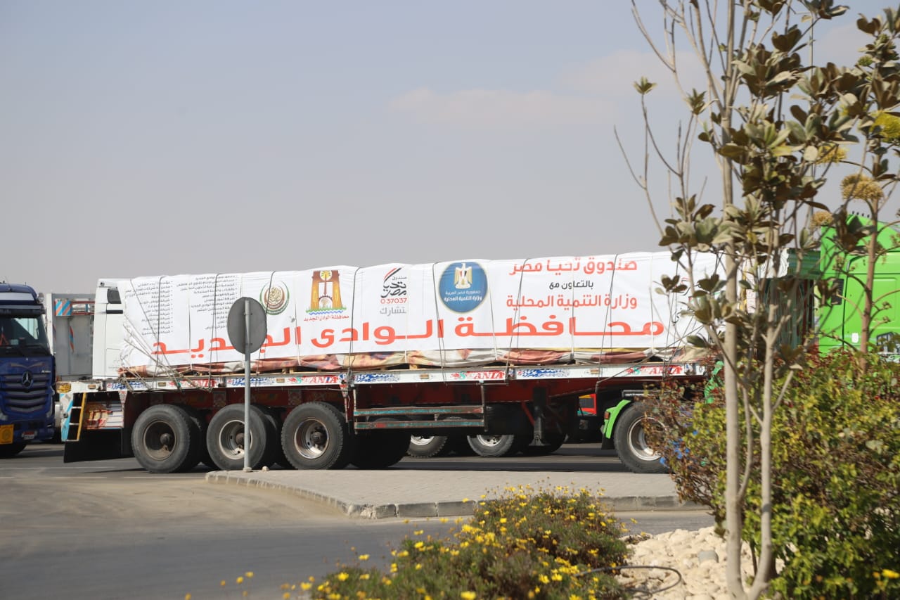 وشهد الوزراء من ساحة الشعب بالعاصمة الإدارية الجديدة، قوافل شاحنات المساعدات الإنسانية الشاملة، والتي اصطفت بشكل مهيب، قادمة من محافظات جمهورية مصر العربية، دعما للأشقاء الفلسطينيين.
