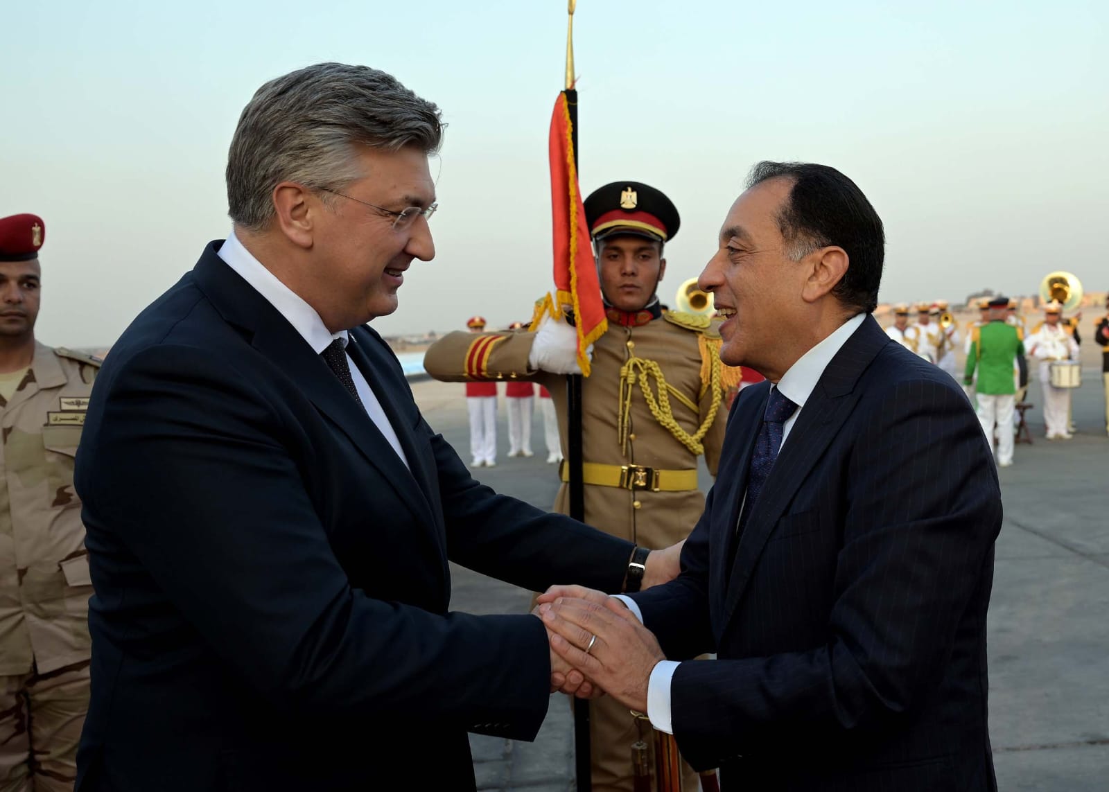 استقبل الدكتور مصطفى مدبولي، رئيس مجلس الوزراء، منذ قليل بمطار القاهرة الدولي، أندريه بلينكوفيتش، رئيس وزراء جمهورية كرواتيا، الذي يزور مصر على رأس وفد رفيع المستوى ووفد من رجال الأعمال الكرواتيين، وذلك بحضور الدكتور أحمد فؤاد هنو، وزير الثقافة، رئيس بعثة الشرف.