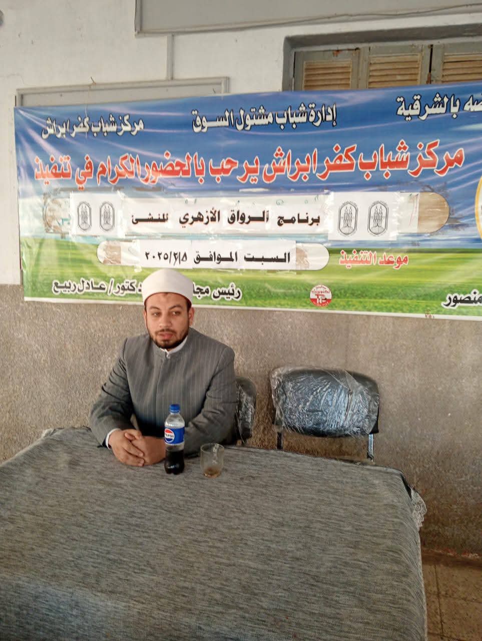 تواصل وزارة الشباب والرياضة تنفيذ الشهر الرابع من برنامج "رواق الأزهر" في موسمه الثالث، حيث عُقدت الجلسة الثالثة من البرنامج بمركز شباب كفر إبراش، وشهدت ندوة بعنوان "إنا خلقناكم من ذكر وأنثى".