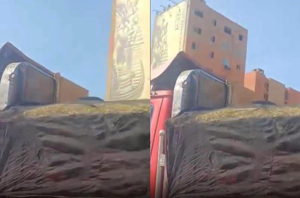 سيارة نقل تحمل شحنة بطاطس محمرة مجهولة المصدر.. والأمن يفحص الفيديو