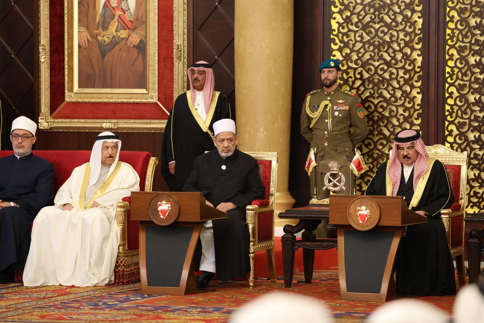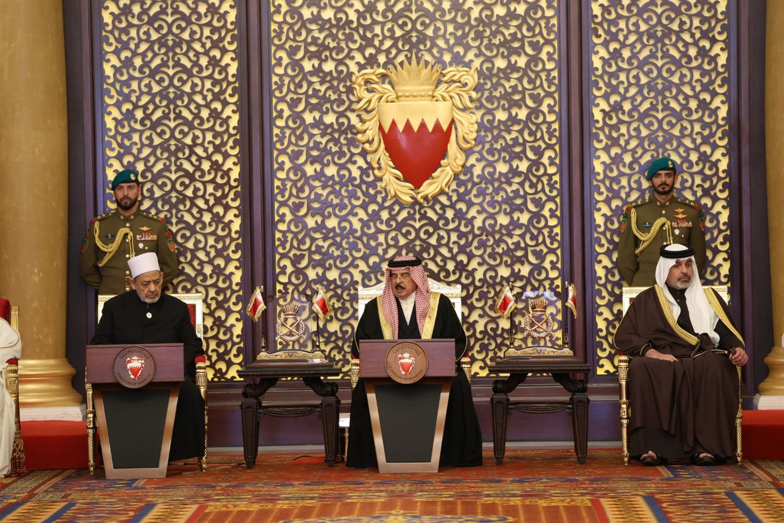 وعبر شيخ الأزهر عن امتنانه لاحتضانَ جلالة الملك حمد بن عيسى آل خليفة، ملك مملكة البحرين، لهذه الدعوة المخلصة للحوار بين الإخوة من أجل جمع الكلمة وتوطيد الأخوَّة الإسلامية في مواجهة التحدِّيات المشتركة، وتوفير الإمكانات اللازمة لإنجاحه وإيصال صوته ورسالته إلى العالم كله، سائلا الله أنْ يُديمَ على البَحْرين وسائرِ بلاد المسلمين الأمنَ والأمانَ والسَّلامةَ والاستقرار.