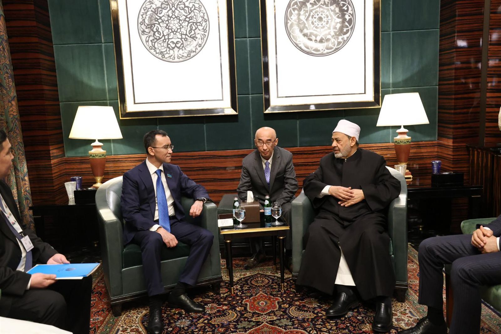 وقدَّم رئيس مجلس الشيوخ الكازاخي الشكر لشيخ الأزهرعلى الدعم المتواصل الذي يقدِّمه الأزهر ومجلس حكماء المسلمين، لمسلمي كازاخستان، ولمؤتمر زعماء الأديان العالمية والتقليدية التي تقيمه كازاخستان سنويًّا، مشيرًا إلى أنَّ المكتب الأقليمي لمجلس حكماء المسلمين بالعاصمة الكازاخية أستانا، يقوم بمبادرات بنَّاءة لترسيخ قيم التعايش ونشر قيم الأخوة الإنسانية وتمكين الشباب والمرأة في البلاد.
